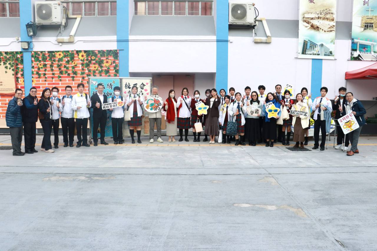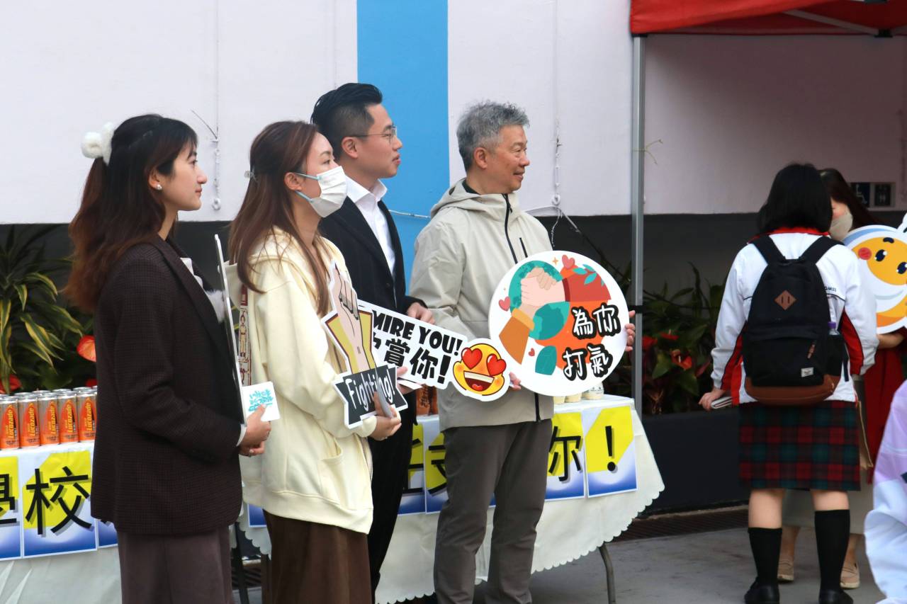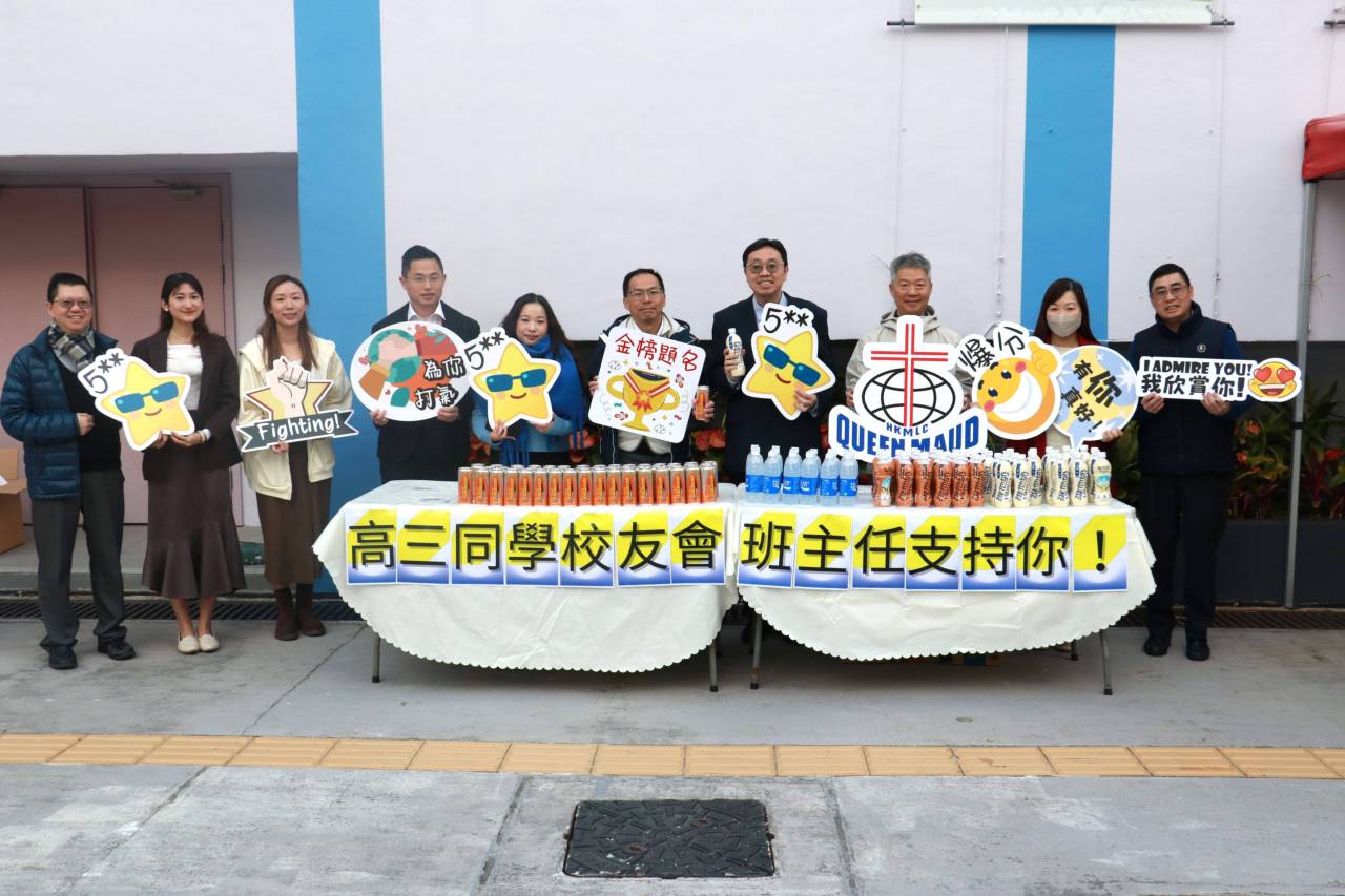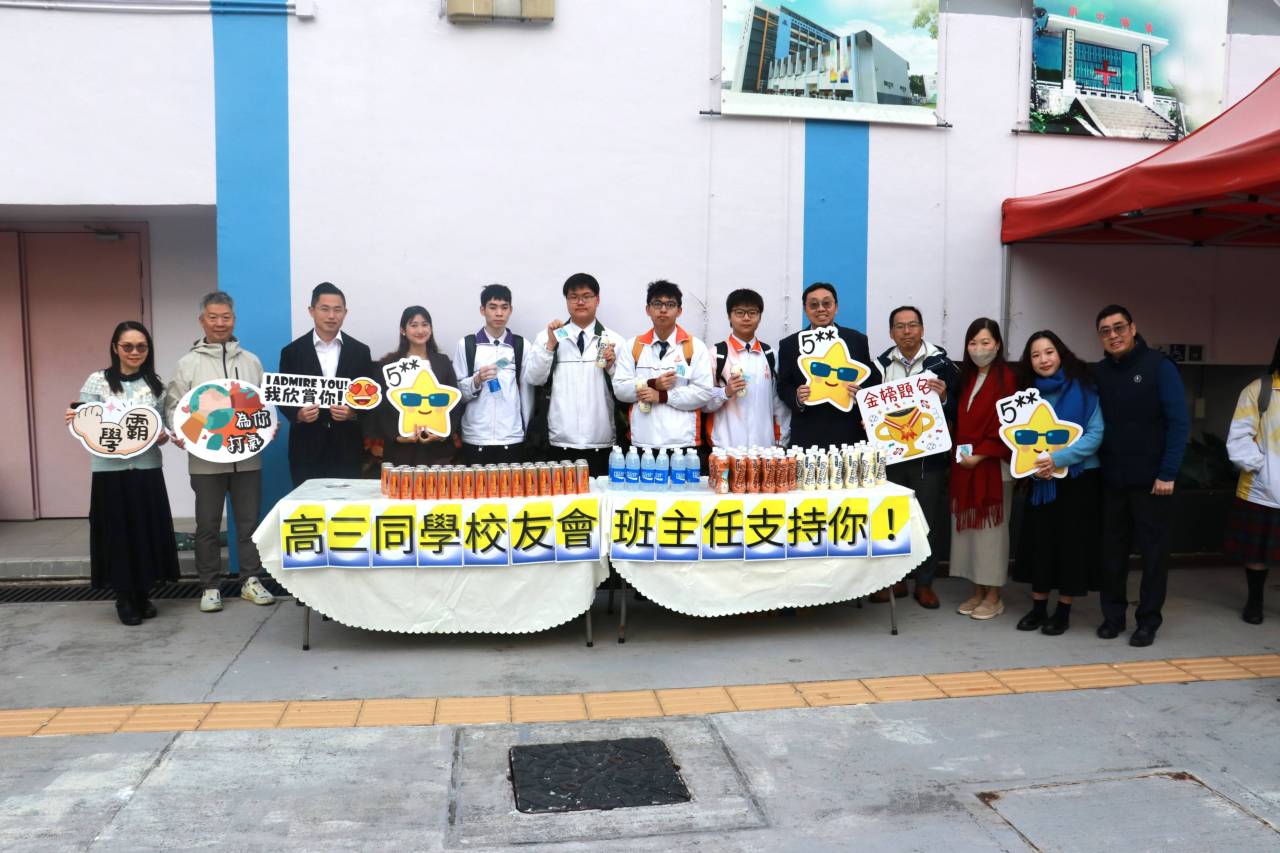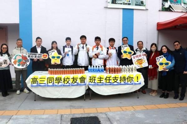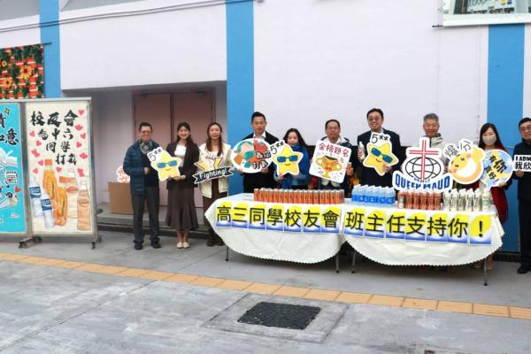 校友會與校長,副校及中六班主任派禮物為高三同學打氣