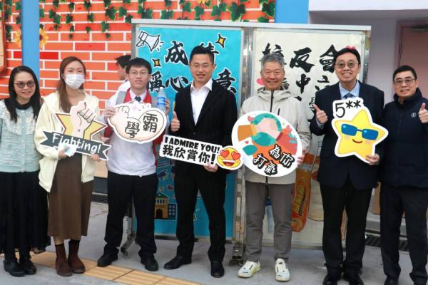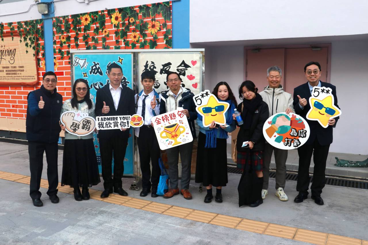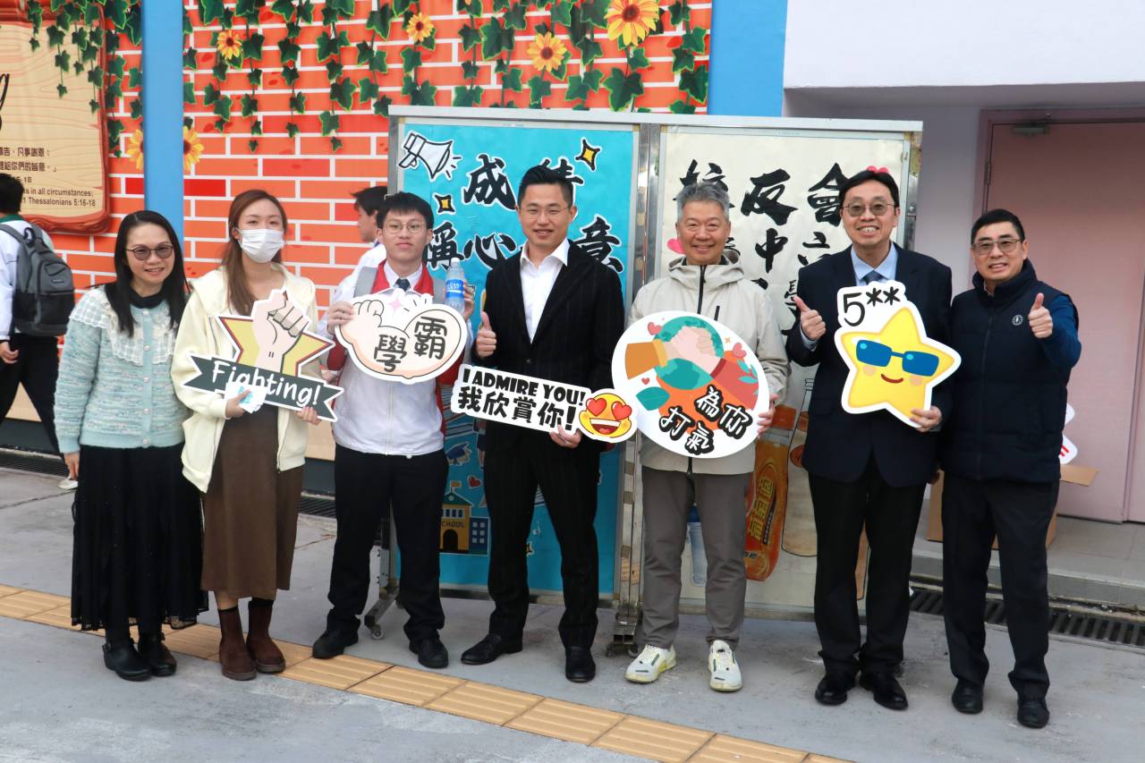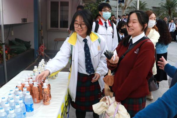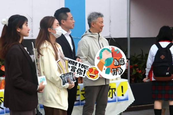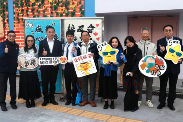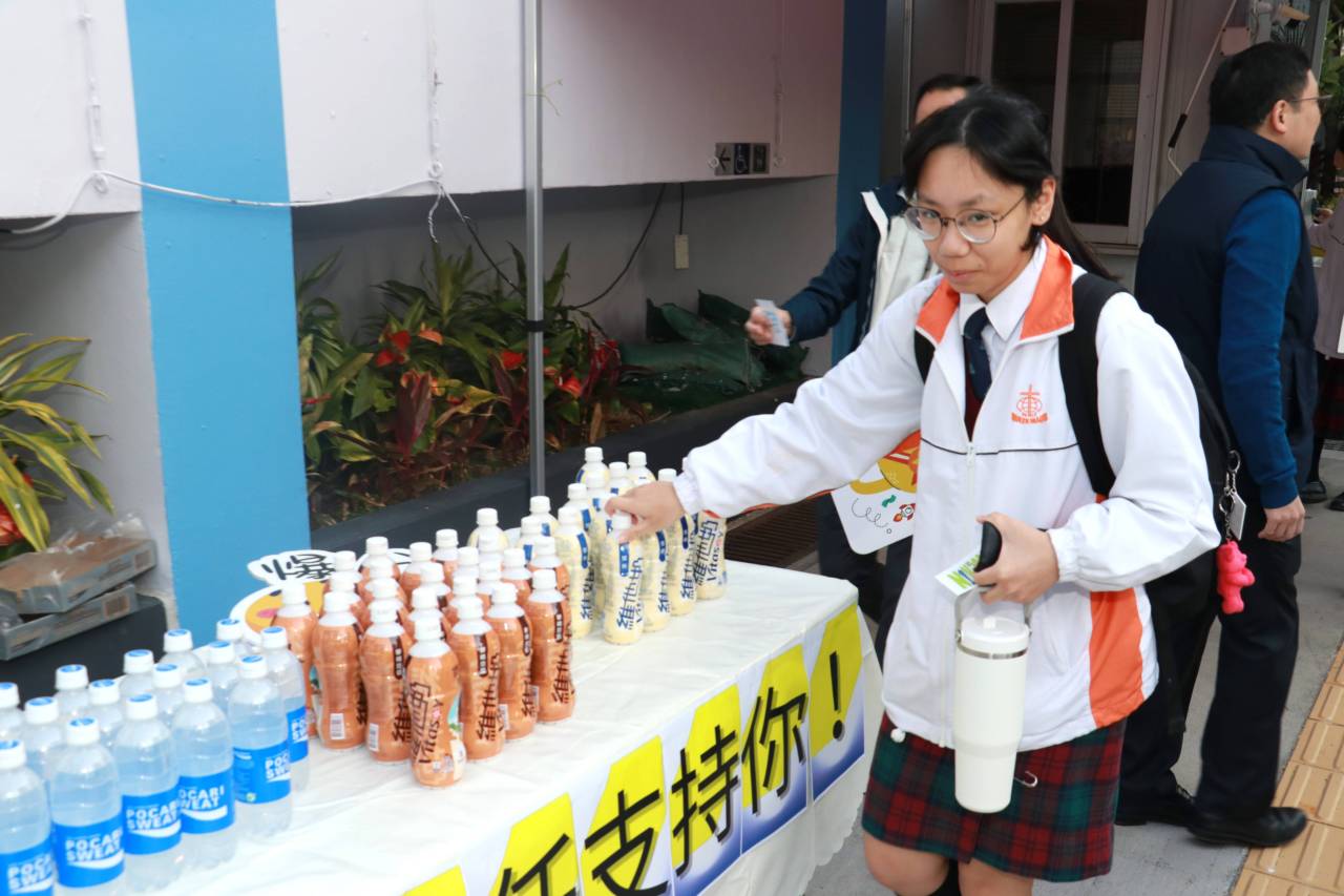 校友會與校長,副校及中六班主任派禮物為高三同學打氣